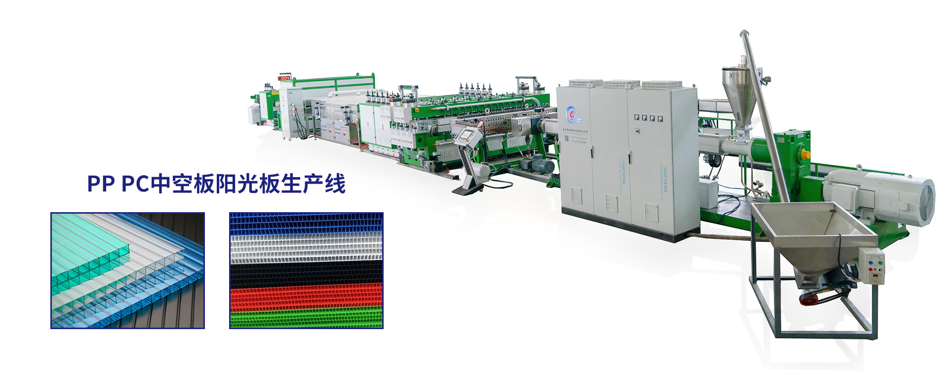 中空格子板設(shè)備用于PC、PE、PP中格子板連續(xù)生產(chǎn)。產(chǎn)品廣泛用于建筑裝飾、廣告布置、公路隔音以包裝